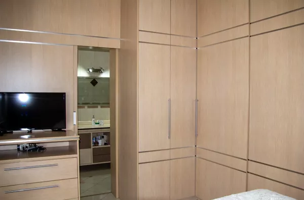 03 dormitórios com móveis planejados, janelas com venezianas motorizadas e telas mosquiteiras