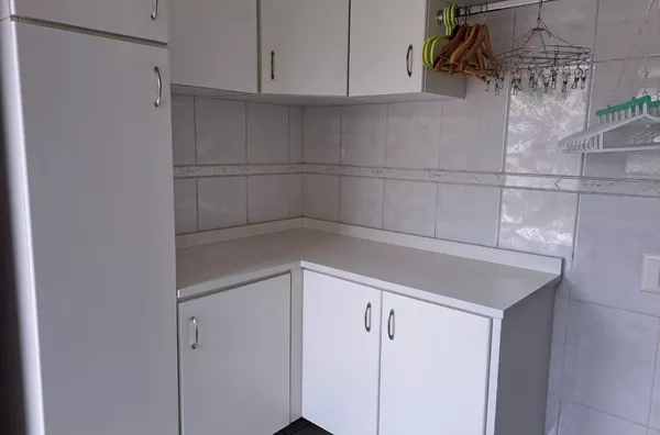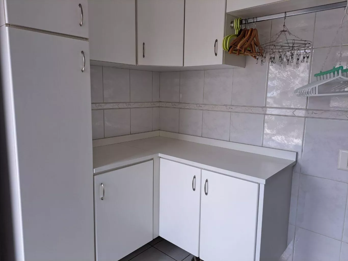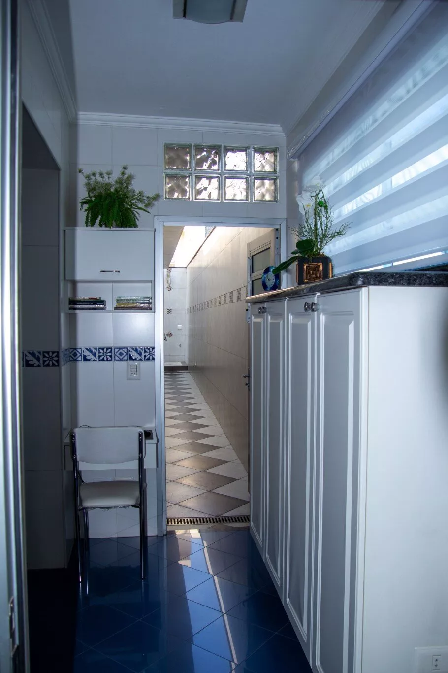 Lavanderia com móveis planejados e 2 tanques inox