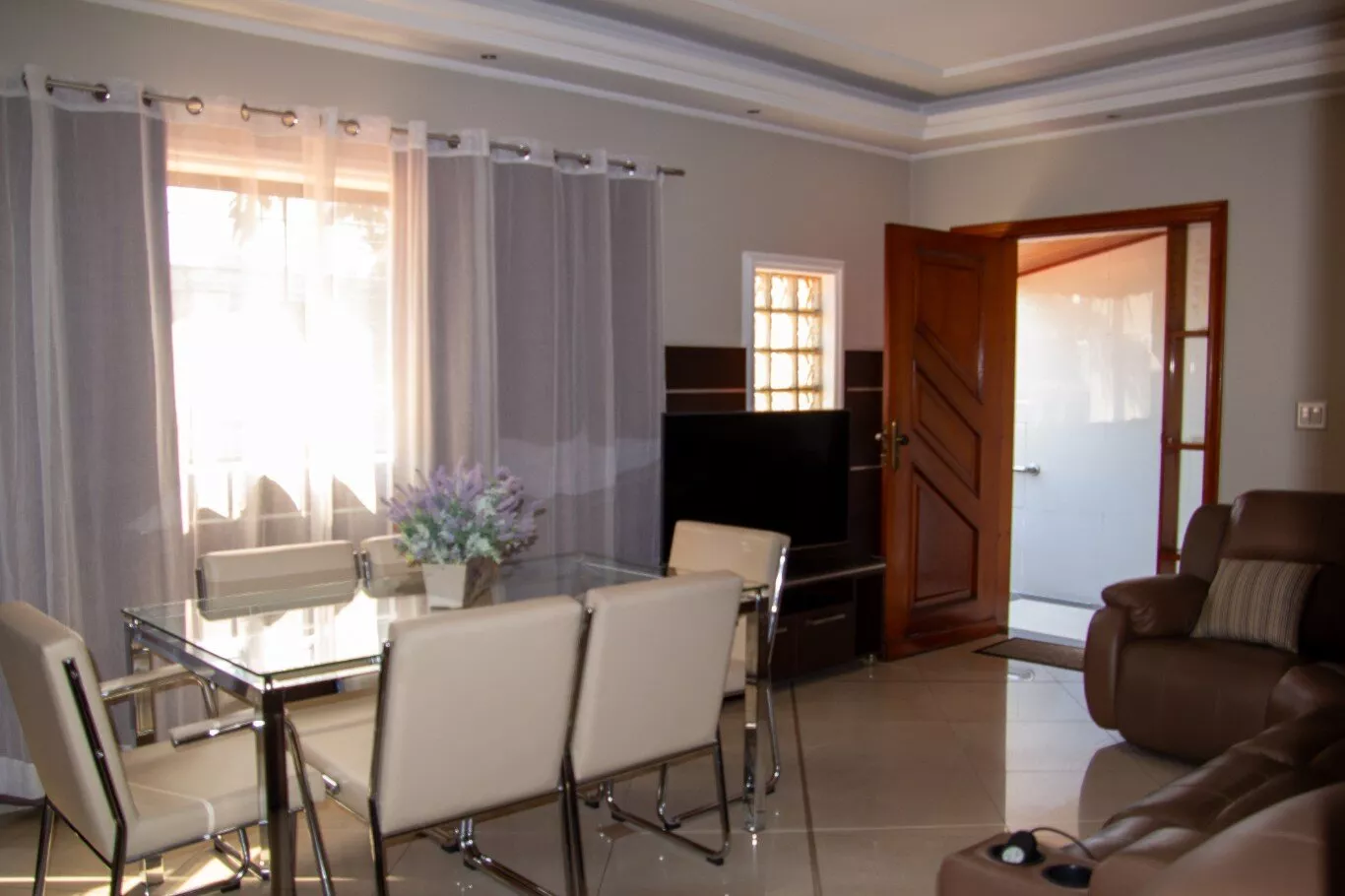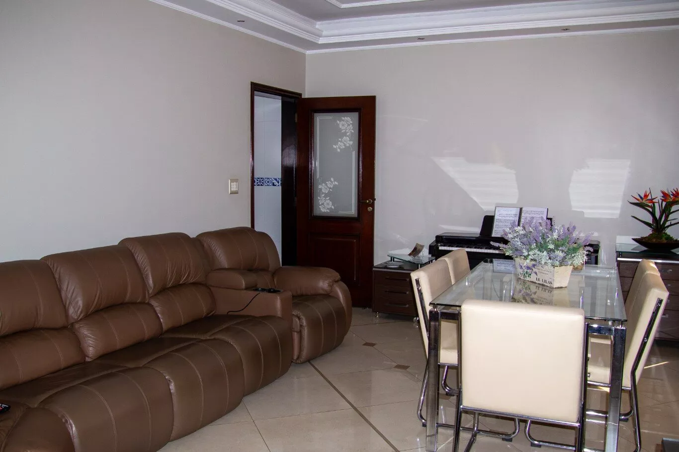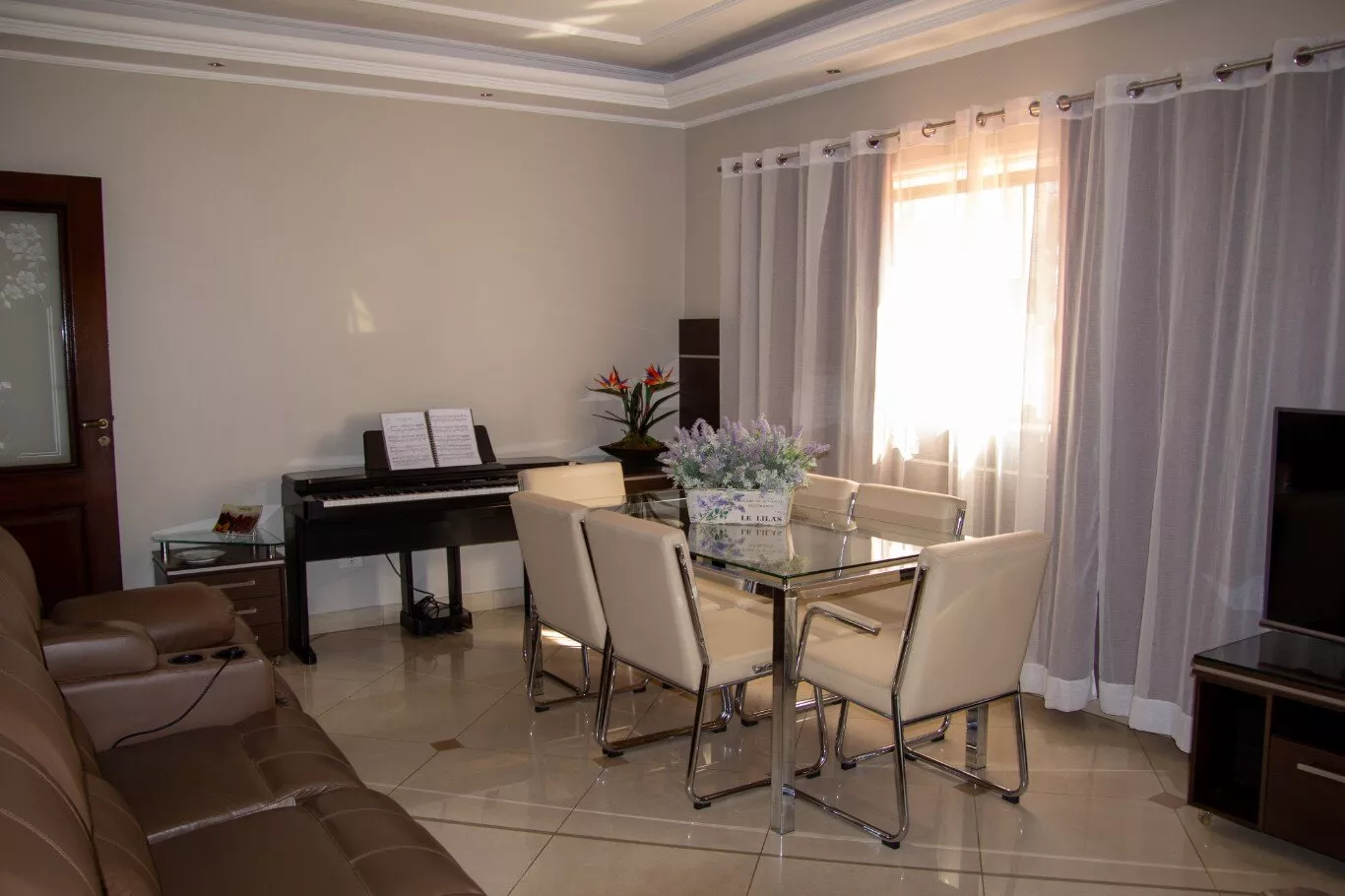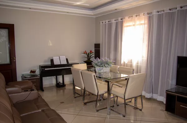 Ampla sala de estar e sala de jantar